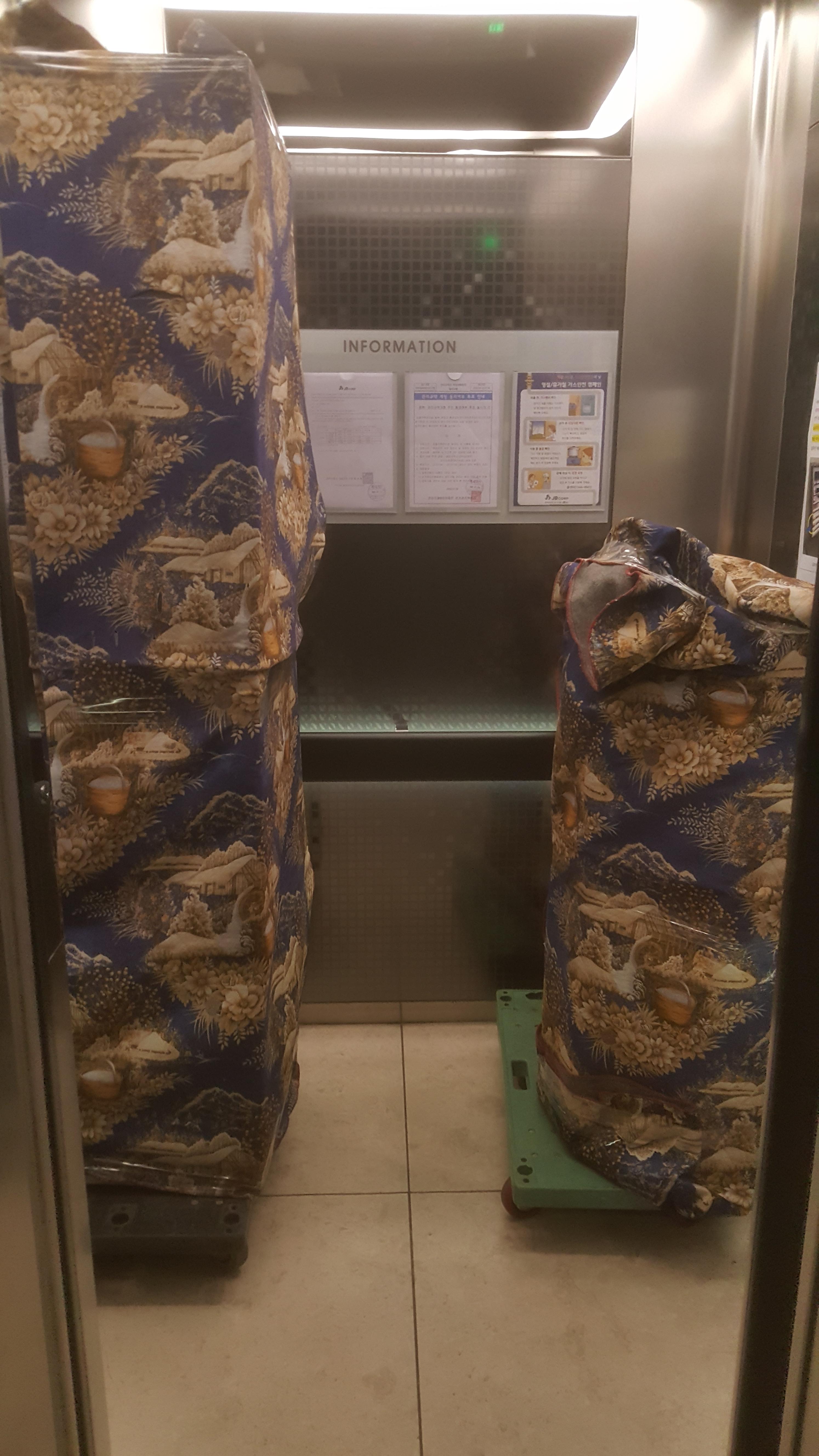 1.5룸 2층엘리베이터로 남자친구 고객님 도움으로 함께 큰짐들과 잔짐들을 이삿짐용 구루마로 운반이동하였고,